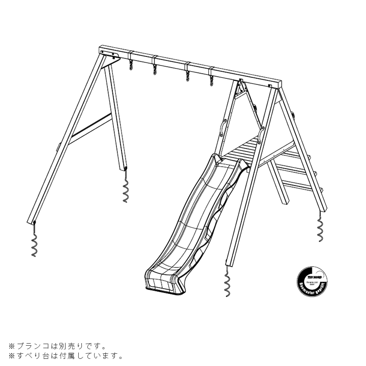 ブランコとすべり台があれば、たくさんのお友達とも楽しく遊べます! すべり台は低めのH1200タイプがセットになっています。