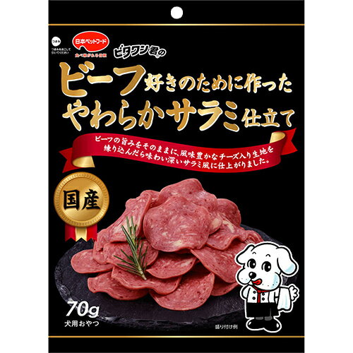 【アウトレット!!】 国産 日本ペットフード ビタワン君の ビーフ好きのために作った やわらかサラミ仕立て 70g 犬用 おやつ ドッグフード/間食 鶏肉・牛肉 ジャーキー 【訳あり※賞味期限:2020年11月末まで】